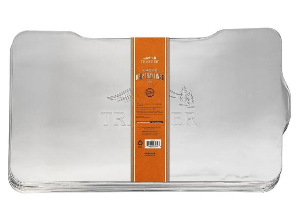 Traeger Drip Tray Liner (produktnummer BAC569) er engangsinnlegg som legges i bunnen av grillen og samler opp fett og avrenning under matlaging. Dette gir en renere grill og gjør rengjøringen både rask og enkel. Aluminiumsinnleggene er skreddersydd for Traeger Ironwood 885 og gir optimal dekning og beskyttelse av dryppbrettet.